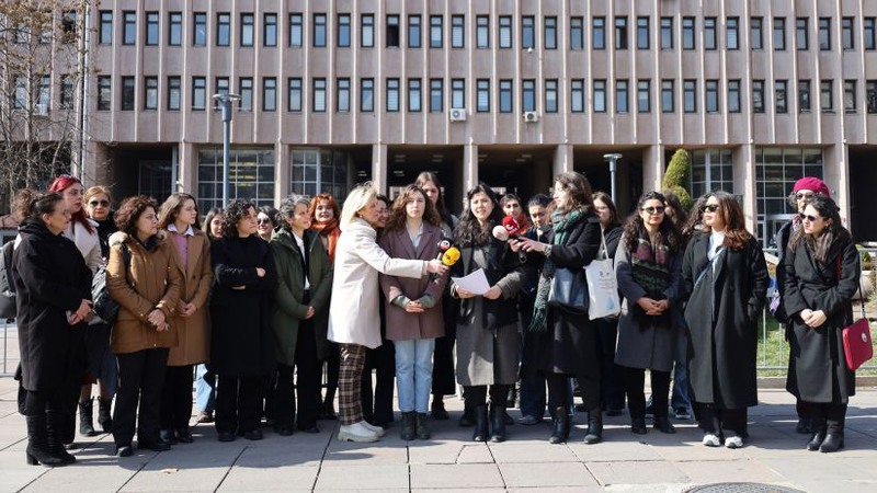 Özgür Hukukçular Derneği (ÖHD), Çağdaş Hukukçular Derneği (ÇHD), Hukukçu Dayanışması, Toplumsal Hukuk, Adalet için Hukukçular ve Demokrasi için Hukukçular’dan kadın avukatlar, erkeklerin bir günde 6 kadını katledilmesine karşı Ankara Adliyesi önünde açıklama yaptı.