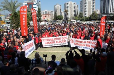 Adana’da Seyhan Belediyesi’nin kadrolu işçileri ve belediye şirketi Seyhan İmar A.Ş. işçileri toplu iş sözleşmesi, görüşmelerinde 2026 yılı için idare tarafından teklif edilen yüzde 3’lük zammı kabul etmeyerek, eylem yaptı. Belediye önünde yapılan eylemde konuşan Devrimci İşçi Sendikaları Konfederasyonu (DİSK) Çukurova Bölge Temsilcisi Ersoy Kalik, işçilere önerilen zam oranının kabul edilemez olduğunu belirterek biriken alacakların derhal ödenmesini istedi.
