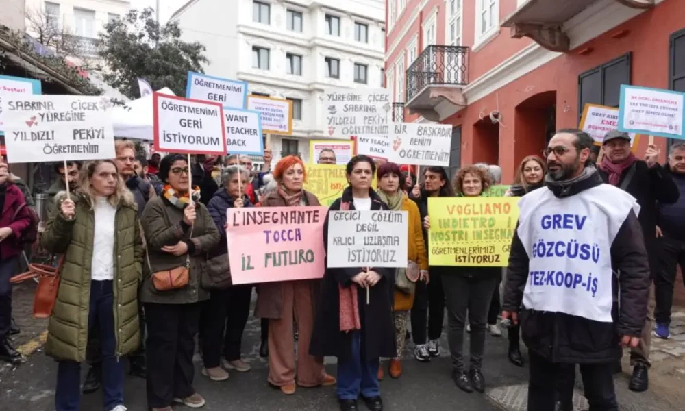Tez-Koop-İş Sendikası üyesi öğretmenlerin grevinin 51. gününe girdiği Özel İtalyan Lisesi’nde veliler, okul önünde bir araya gelerek grevdeki eğitimcilere destek verdi. Veliler, öğretmenlerin yanında olmaya devam edeceklerini vurgulayarak “Öğretmenlerimizle gurur duyuyoruz” dedi.