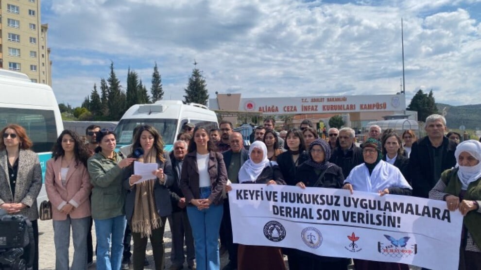 Özgürlük için Hukukçular Derneği, Çağdaş Hukukçular Derneği ve İnsan Hakları Derneği İzmir şubeleri, İzmir Kadın Kapalı Hapishanesi’nde yaşanan hak ihlallerine dikkat çekmek için hapishane önünde açıklama yaptı.