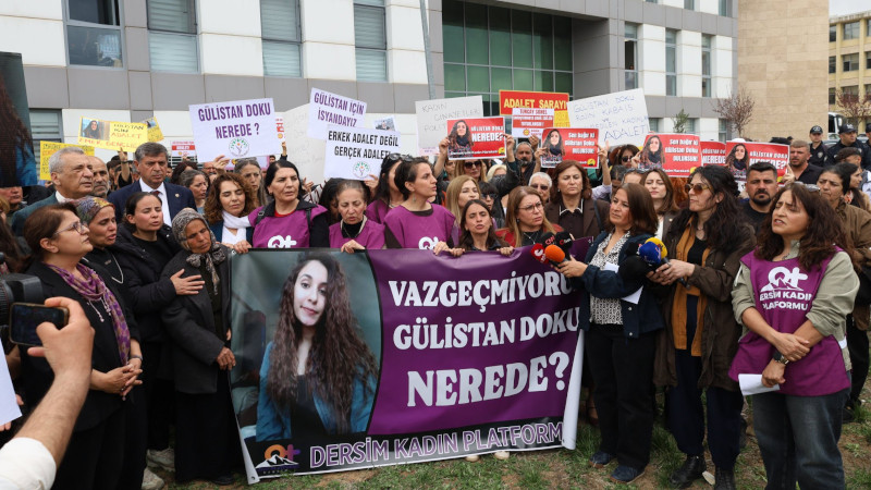Dersim Kadın Platformu, Gülistan Doku soruşturması kapsamında yaşanan gelişmelere dair açıklama yaptı. Gülistan Doku’nun fotoğrafları ile “Erkek adalet değil, gerçek adalet”, “Gülistan Doku, “Rojin Kabaiş ve kaybedilen kadınlar için adalet”, “Bir kişi değil, bir sistem sorgulanmalıdır” dövizlerinin açıldığı açıklamada, “Yaşasın kadın dayanışması”, “Gülistan Doku nerede?”, “Gülistan için Adalet”, “Kadın cinayetleri politiktir” sloganları atıldı.