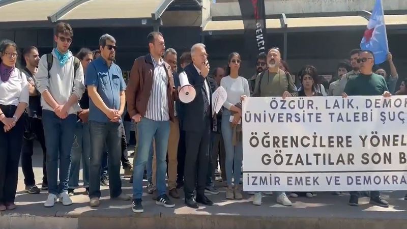 Adliye önünde açıklama yapan İzmir Barosu Başkanı Av. Sefa Yılmaz, “Bu suçlarla tutuklamaya sevk ve tutuklama kararı tam bir hukuksuzluktur. Cezaların önce alt sınırından başlanılır. Cezanın üst sınırı delil gösterilerek hukuksuz bir biçimde insanlar tutukluluğa sevk edilmezler. Bu öğrenciler okullarına gitmek zorundalar” dedi.