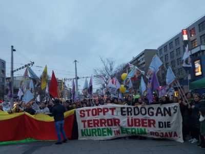 Mitinge katliam Die Linke temsilcileri, HDP Milletvekili Tuğba Hezer, Aachen ve Düren kent meclis Eşbaşkanları birer konuşma yaptı. Eylemde sık sık “Bijî Berxwedana Efrîn” “Terörist Erdoğan” “Bijî YPG/YPJ” sloganları atıldı.