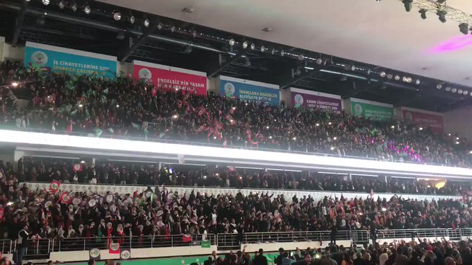 HDP Kongresi, şarkılar, türküler, sloganlar eşliğinde büyük bir coşkuyla başladı. HDP Eş Genel Başkanı Serpil Kemalbay ile kongrede eş genel başkan adayları olduğu duyurulan Pervin Buldan ve Sezai Temelli’nin salona gelmesiyle coşku doruğa çıktı. Eş genel başkanlar HDP’nin 1 Kasım seçimindeki müziği “İnadına HDP” eşliğinde salonu gezerek kitleyi selamladı.
