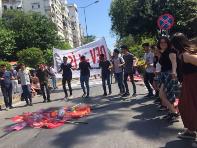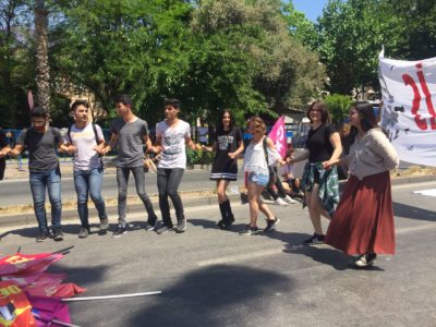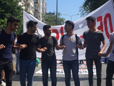 “Dün vardık, bugün varız ve yarınlarda da var olmaya devam edecegiz!” diyen Devrimci Liseliler, “Özgürlük sokakta” “İşçi gençlik el ele” şiarıyla 1 Mayıs alanına girdi. Alanda sık sık “Her yer Taksim her yer direniş” sloganları atıldı. Kitle, Dev-Lis’i yoğun alkış ve halaylar eşliğinde karşıladı.