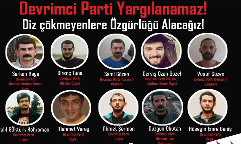 Bir süre tutuklu kalan, dönemin Devrimci Parti MYK üyeleri Serkan Kaya, Ezgi Harbelioğlu, PM üyesi Direnç Tuna, İl Başkanı Sami Gözen, İl yöneticileri Yusuf Gözen, Bejna Güney, Dilan Özer, Halil Göktürk Kahraman, Akdeniz İlçe yöneticileri Düzgün Okutan, parti üyeleri, Hüseyin Emre Geniş, Mihriban Altun, Mehmet Yaray, Devrim Ali Avcu, Ali Ahmet Şarman’ın yargılandığı dosyada bugün karar açıklandı.