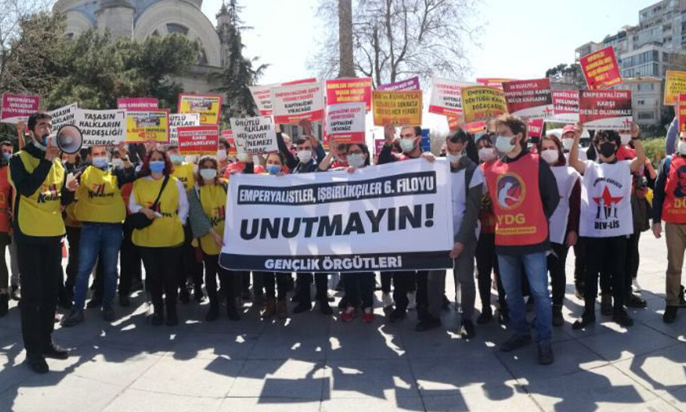 Gençlik örgütleri, ABD savaş gemilerinin boğazlardan geçerek Karadeniz’e ulaşmasına karşı Dolmabahçe’de eylem yaptı. 6. Filo’nun denize döküldüğü Dolmabahçe’de basın açıklaması gerçekleştiren gençlik örgütleri “Emperyalistler, işbirlikçiler 6. Filo’yu unutmayın!” yazılı bir pankart açtı. Eylemde basın metnini gençlik örgütleri adına Mert Soydan okudu.