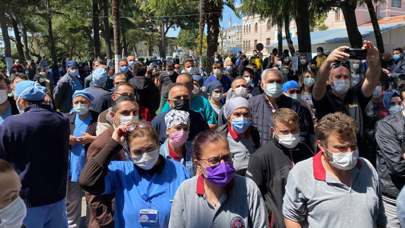 Cerrahpaşa Tıp Fakültesinde çalışan ve Türk-İş’e bağlı Türkiye Sağlık İşçileri Sendikasına üye olan sağlık işçileri eşit işe eşit ücret talebiyle eylem yaptı.