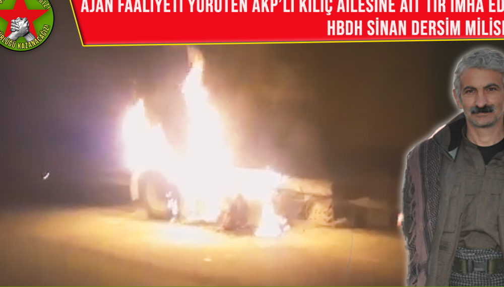 HBDH Sinan Dersim Milisleri tarafından ajan faaliyeti yürüttüğü belirtilen AKPli Kılıç ailesine ait tır imha edildiği açıklandı.