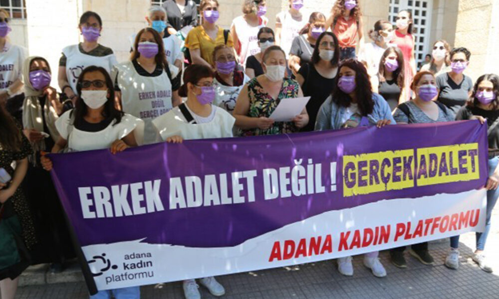 Duruşma öncesi Adana Kadın Platformu Adana Adliyesi Taş Bina önünde açıklama yaptı. Platform adına konuşan avukat Sevil Aracı Bek, iddia makamının bir önceki duruşmada beraat talep etmesine tepki gösterdi.