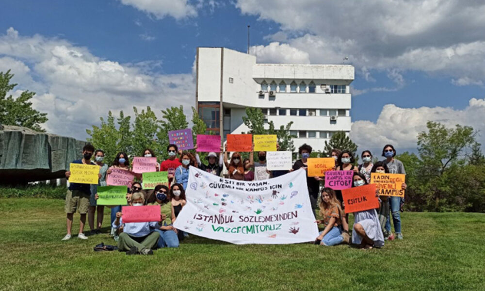 ODTÜ’de 20 öğrenci topluluğu ve bir öğrenci temsilciliğinin çağrısıyla Türkiye’nin İstanbul Sözleşmesinden çekilmesine karşı eylem yapıldı.