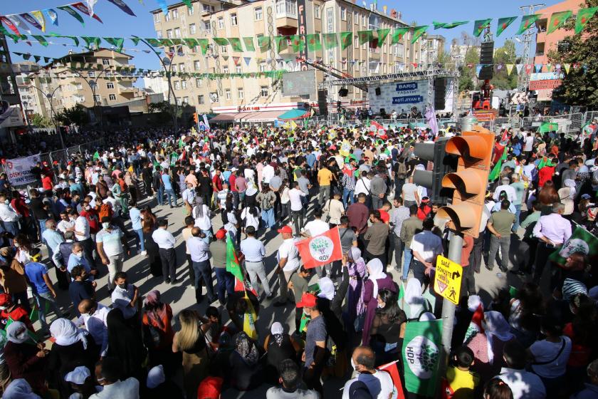 HDP il binası önünde bir araya gelen yüzlerce kişi, HDP Eş Genel Başkanı Pervin Buldan ile DBP Eş Genel Başkanı Keskin Bayındır’ın katılımıyla miting alanına yürüyüş gerçekleştirdi. Yürüyüş kolu, miting alanında sloganlar ve zılgıtlarla karşılandı.