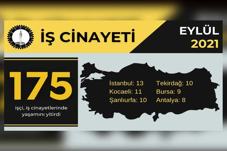 Rapora göre, Eylül ayında en az 175 işçi yaşamını yitirdi. Raporda, yılın ilk 9 ayında ise en az bin 674 işçinin hayatını kaybettiği kaydedildi.