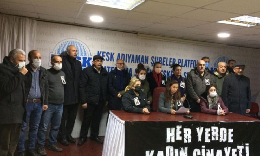Kamu Emekçileri Sendikaları Konfederasyonu (KESK) Adıyaman Şubesi’nde düzenlenen toplantıya, kentte bulunan sivil toplum kuruluşları ve siyasi parti temsilcileri destek verdi. Salona, “Her yerde kadın cinayeti, öldürülen kadınlar isyanımızdır” yazılı pankart asıldı. Katılanların siyah kurdele taktığı toplantıda, platform adına Süphan Deniz Doğan konuştu.