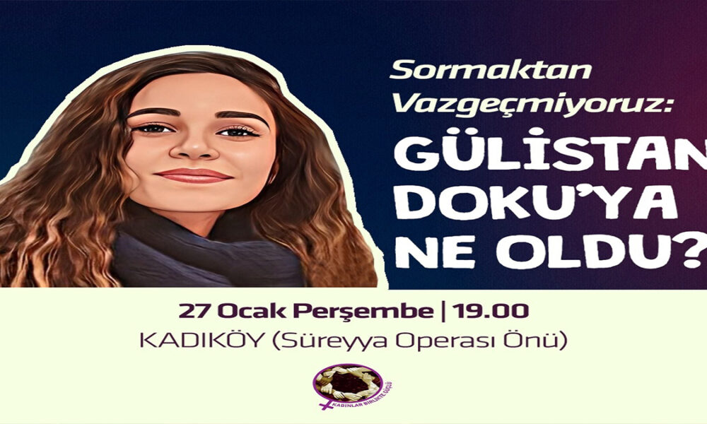 Kadınlar Birlikte Güçlü “Sormaktan vazgeçmeyeceğiz: Gülistan Doku nerede?” diyerek İstanbul Kadıköy’e eylem çağrısı yaptı. 27 Ocak Perşembe günü saat 19:00’da Süreyya Operası önünde yapılacak.