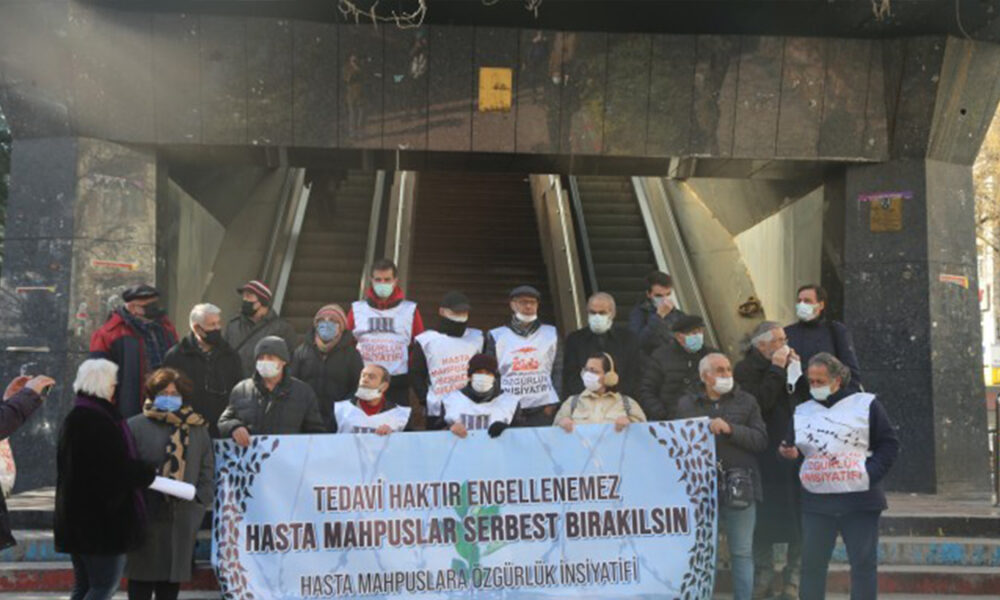 Hasta Mahpuslara Özgürlük İnisiyatifi, eylemlerinin 387’inci haftasında İnsan Hakları Derneği (İHD) Ankara Şube önünde basın açıklaması gerçekleştirdi. “Tedavi haktır engellenemez ve hasta mahpuslar serbest bırakılsın” yazılı pankartın yer aldığı açıklamada konuşan İHD Ankara Şube Eşbaşkanı Sevil Turgut, Kandıra 1 Nolu F Tipi Kapalı Cezaevi’nde tutulan Kürt siyasetçi Aysel Tuğluk’un durumuna dikkati çekti.