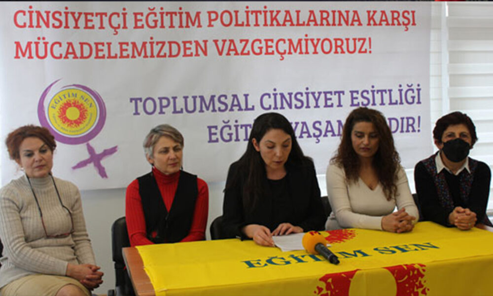 Toplantıda konuşan Eğitim Sen Genel Kadın Sekreteri Simge Yardım, “Toplumsal cinsiyet eşitsizliği ve ayrımcılığının sokakta, evde, işte, derste yani yaşamın her alanında; aile, okul, hukuk, ahlak, din ve medya tarafından sistemli bir şekilde inşa edildiği ataerkil egemen işleyişte, eğitim sistemi bu eşitsizliklerin sürdürülmesinde önemli bir rol oynamaktadır. Türkiye’deki eğitim sisteminin özellikle kadınların ve kız çocuklarının geleneksel cinsiyet rollerini meşrulaştıran yapısı, AKP-MHP iktidar bloğunun muhafazakâr ve gerici cinsiyet anlayışıyla birlikte derinleşmektedir” dedi.