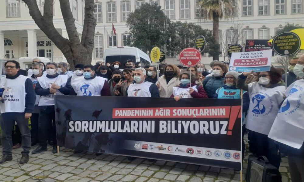 Sağlık emek ve meslek örgütleri, pandeminin ikinci yılına ilişkin birçok ilde gerçekleştirdikleri açıklamarla tepkilerini dile getirdi. Türkiye’de ilk kovid vakasının açıklandığı 11 Mart 2020’den beri ‘salgının değil algının’ yönetildiğini belirten sağlıkçılar, yaşamını kaybeden 519 sağlık emekçisi için “Korunması ve önlenmesi mümkün olan bir hastalık yüzünden öldüler. Sorumluları biliyoruz, unutmuyoruz ve affetmiyoruz” dedi.