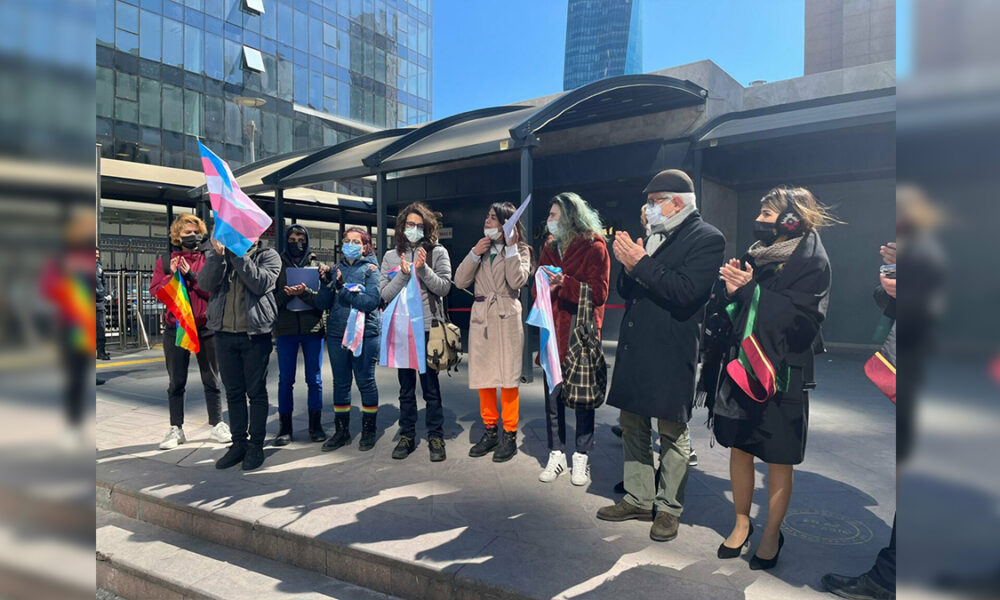 Genç LGBTİ+ Derneği, duruşma öncesinde Bayraklı Adliyesi’nde basın açıklaması yaptı. “Trans yaşamlarımız değerlidir” diyen dernek, süreci takip edeceklerini vurguladı.