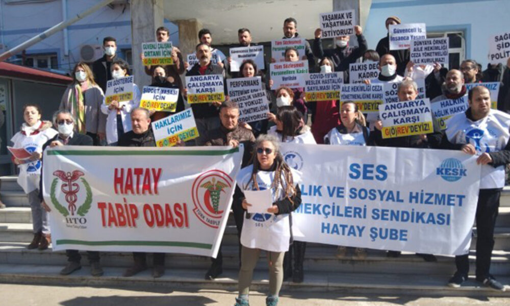 Hatay’da iş bırakan sağlık emekçileri, ikinci günde de alanlarda olup, taleplerini haykırdı. Hatay Tabip Odası ve SES Hatay Şubesi, Samandağ Devlet Hastanesi, MKÜ ve İskenderun Devlet Hastanesi önünde açıklamalar yaparak, “Oyalama değil, hakkımızı istiyoruz” dedi.