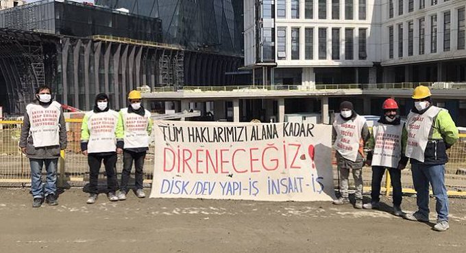 İnşaat-İş ve Dev Yapı-İş’in Finans Şehir Merkezi’nde ana firmanın Gür Yapı olduğu GYY-IFM şantiyesinde çalışan üyelerinin kıdem-ihbar tazminatları, AGİ’leri ve fazla mesai hakları ödenmeden işten çıkarılmasına karşı şantiye ve Emlak Konut ofisi önünde sürdürdükleri direniş, dün ikinci gününde kazanımla sonlandı.