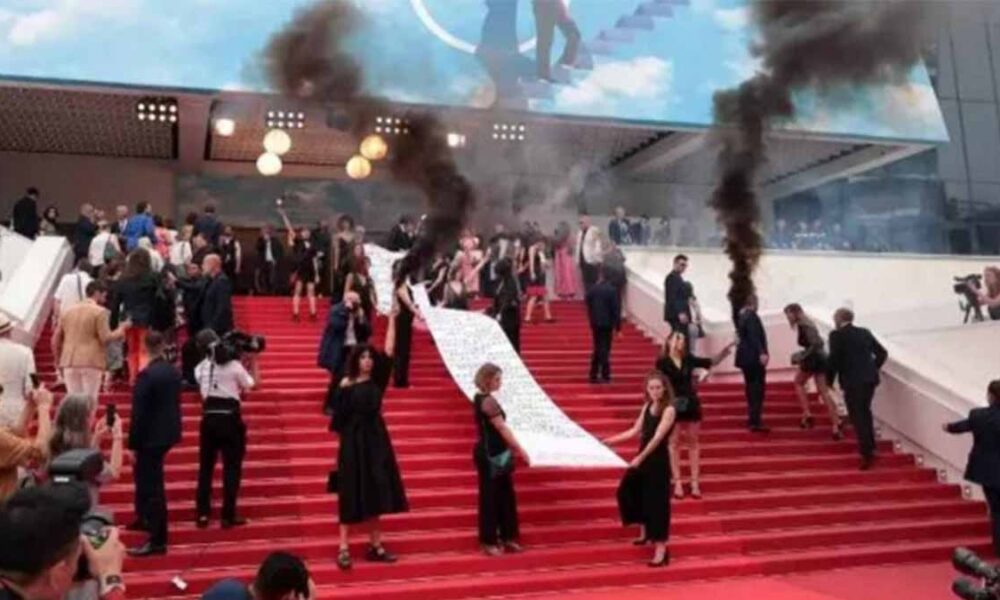 Kadın haklarını savunan “Les Colleuses” adlı bir grup feminist, kırmızı halıda eylem düzenledi. Grup üyesi 12 kadın, Cannes Film Festivali’nde Fransa’da katledilen 129 kadının ismini gösteren pankartı taşırken, dumanlar yaktı ve yumruklarını havaya kaldırdı.