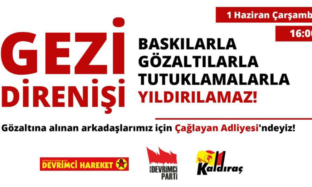 Gezi Direnişi’nin 9. yıldönümü için dün yapılan eylemler sırasında gözaltına alınan ve serbest bırakılmayan 4 kişi için Çağlayan’a çağrı yapıldı