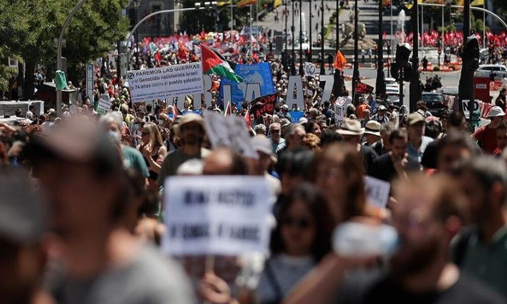 İspanya’da sivil toplum kuruluşlarının (STK) çağrısıyla organize edilen “Barış için: NATO’ya hayır” başlıklı gösteriye, koalisyon hükümetinin küçük ortağı Unidas Podemos ittifakına bağlı Birleşik Sol (IU) ve Podemos partilerinin temsilcileri de destek verdi. Yürüyüşe Avrupa’nın çeşitli ülkelerinden NATO karşıtları katıldı.