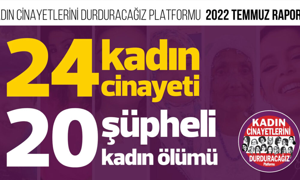 Kadın Cinayetlerini Durduracağız Platformu’nun Temmuz ayı raporuna göre en az 24 kadın katledildi, 20 kadın şüpheli şekilde yaşamını yitirdi.