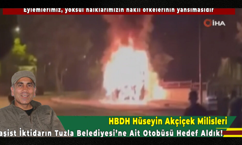 HBDH Hüseyin Akçiçek Milisleri olarak iktidar partisi faşist AKP’li Tuzla Belediyesine ait İETT otobüsünü yaktık. 29 Ağustos gece 01.30 sıralarında, Şekerpınar Caddesi’nde park halinde olan İETT otobüsünü ateşe verdik.