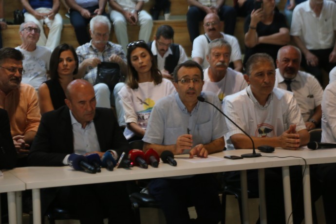 Kurumlar adına basın metnini TMMOB İzmir İl Koordinasyon Kurulu Sözcüsü Aykut Akdemir okudu. Geminin 1 buçuk yıldır yürütülen mücadeleye rağmen 4 Ağustos 2022 tarihinde Brezilya’dan yola çıktığını söyleyen Akdemir, bunun üzerine kentin her yerinde basın açıklamaları, mitingler ve imza kampanyaları yürüttüklerini kaydetti. Ayrıca gemiye verilen izne dair dava açtıklarını da anımsatan Akdemir, şöyle devam etti: “Mücadelemiz güçlenerek devam ederken 26 Ağustos’ta, Çevre Şehircilik ve İklim Değişikliği Bakanı Murat Kurum tarafından Tehlikeli Madde Envanter Raporu’nun Bakanlığa sunulmaması nedeniyle, Nae Sao Paulo gemisi için verilmiş olan şartlı notifikasyon onayının iptal edildiği, geminin Türkiye kara sularına girişine izin verilmeyeceği açıklandı. Yapılan açıklama, çevre ve halk sağlığına zararlı olan, bilim ve hukuk dışı işlere karşı yürütülen örgütlü mücadelenin sonucu ortaya çıkmıştır.  Ancak bu açıklama mücadele için nihai bir sonuç değil, ihtiyatla karşıladığımız bir karardır. Açıklamanın üzerinden 7 gün geçmiştir. İlgili ulusal uluslararası mevzuata aykırı olarak, eksik yanlış beyanlarla, Brezilya’daki mahkeme kararlarına ve yapılan açıklamaya rağmen, zehirli gemi yolculuğunu durdurmamış, hala yoluna devam etmektedir” dedi.