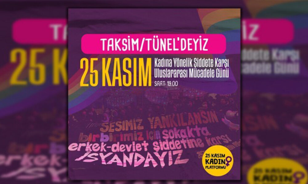 25 Kasım Kadın Platformu, sanal medya hesaplarından yaptıkları açıklamada 25 Kasım Kadına Yönelik Şiddete Karşı Uluslararası Mücadele Günü’nde Taksim Tünel’de olacaklarını duyurdu. Kadınlar, açıklamada “Gelsin erkekler bildiği gibi, gelsin devlet bildiği gibi. Biz de 25 Kasım saat 19.00’da erkek-devlet şiddetine karşı Taksim Tünel’deyiz bildiğimiz gibi. Haydi bakalım saatlerimizi ayarlayalım, çağrımızı ulaştırmadık kadın bırakmayalım” ifadelerine yer verdi.