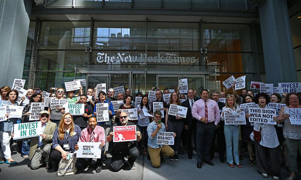 New York Times’ta, bin 100 çalışan 24 saat greve gideceğini duyurdu. Gazete çalışanları okuyucularına perşembe günü gazeteyi almama ve internet sitesine girmeme çağrısı yaptı.