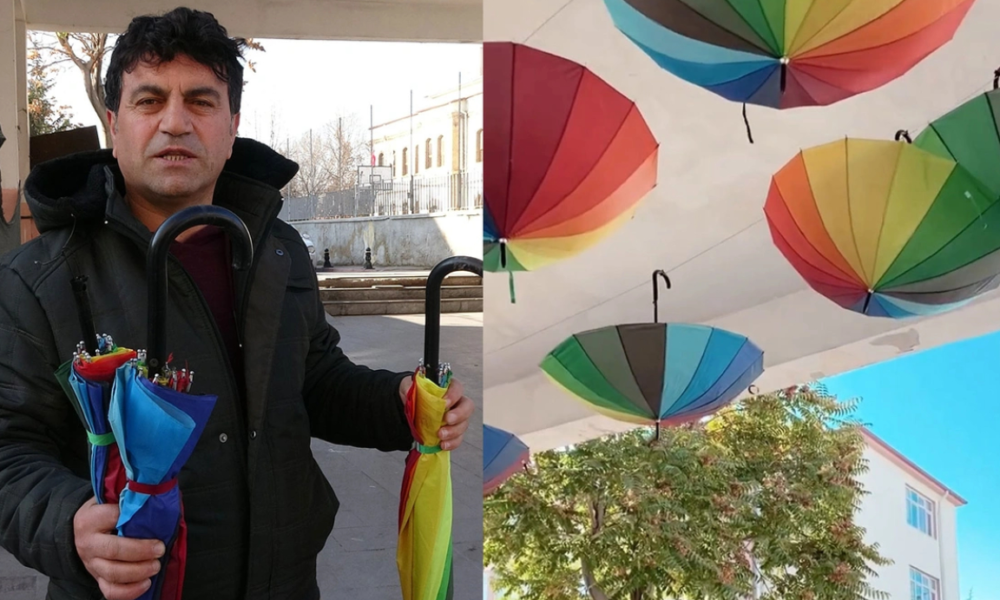 Niğde’de Hüdavent Hatun Parkı’nda çay ocağı işletmecisi Şaban Güleryüz, sokağın güzelleşmesi için tavana gökkuşağı renklerinde şemsiyeler taktı. Ancak şemsiyelerin LGBTİ+ renkleriyle bağdaştırıldığı için kaldırmak zorunda kaldı.