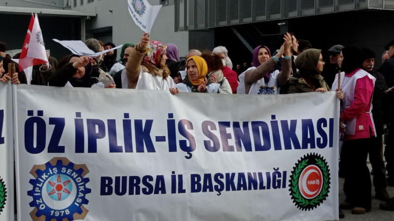 Bursa’da bulunan Barutçu Tekstil’te işten çıkarılan 9 kadın işçinin direnişi sürüyor. Maruz kaldıkları hak gasplarına karşı Öz İplik-İş Sendikasına üye olmalarıyla birlikte patron tarafından işten çıkarılan işçilerler bugün çok sayıda kişinin katılımıyla fabrika önünde açıklama yaptı.