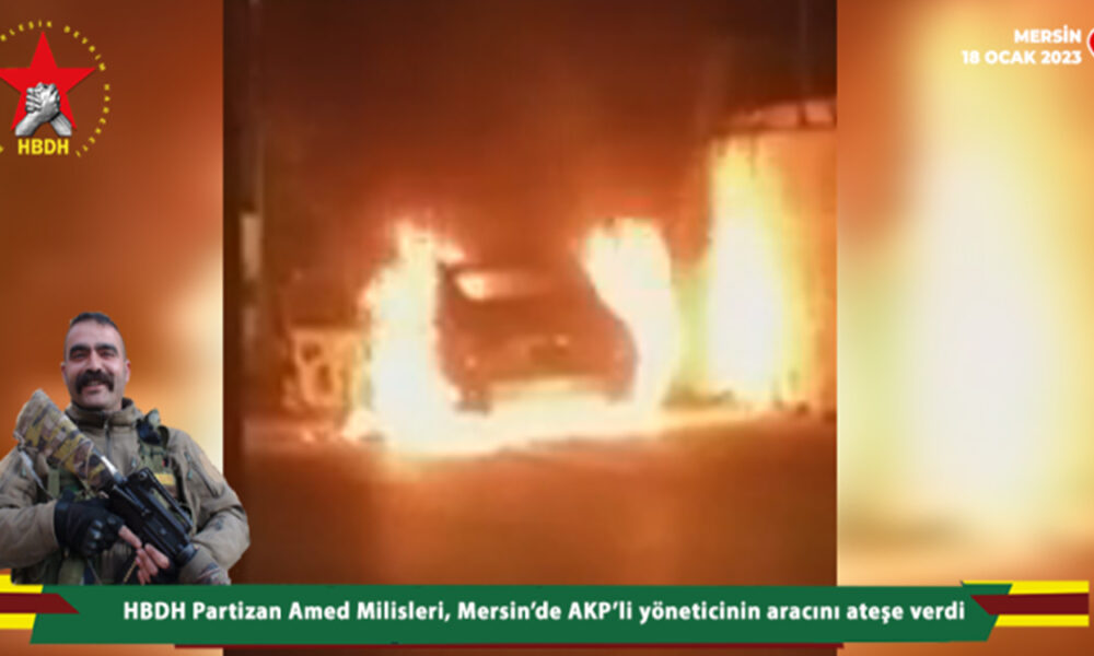 HBDH Partizan Amed Milisleri, 18 ocak akşamı saat gece 01:00 sıralarında Mersin’de AKP’nin yöneticiliğini yapan Yılmaz S. isimli şahsın aracını ateşe verdi.