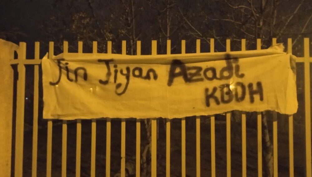 KBDH milisleri olarak, kadın özgürlük mücadelemizin ateşini her yere yaymak için 8 Mart gecesi İstanbul, Mersin ve Van’da yazılamalar ve pankart asma eylemleri yaptık.
