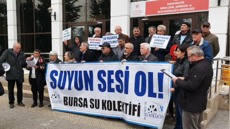 Bursa Su Kolektifi, Dünya Su Gününde Çevre, Şehircilik ve İklim Değişikliği İl Müdürlüğü önünde açıklama yaptı. “Suyun sesi ol” pankartının açıldığı eylemin metnini Figen Ovat ve Habib Göbelez okudu. İklim krizinin bilimsel olarak havadaki karbondioksit ile bağlantısının kurulduğundan bu yana on yıllar geçtiği hatırlatılan açıklamada, hükümetlerin tüm uyarıları yok sayarak sürekli büyümek zorunda olan ve büyürken enerji gereksinimini ve havada kirlilik ve karbondioksit artıran sermayenin, kapitalizmin taleplerini yerine getirdiği kaydedildi.