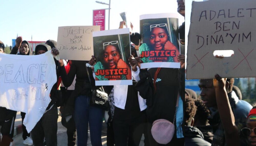 Karabük’te cesedi bulunan Gabonlu öğrenci Dina Ibouanga için üniversite kampüsünde eylem yapıldı.