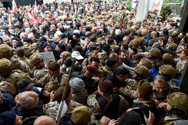 Başkent Beyrut’un “Şehitler Meydanı”nda bir araya gelen yüzlerce emekli asker ve kamu çalışanı, ellerinde Lübnan ve ordu bayraklarıyla, Başbakanlık ofisinin bulunduğu Hükümet Sarayı yakınına kadar yürüdü.