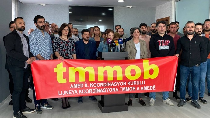 Türk Mühendis ve Mimar Odaları Birliği (TMMOB) Amed İl Koordinasyon Kurulu (İKK) ile Diyarbakır Kent Koruma ve Dayanışma Platformu üyeleri, Amed merkezli 21 ilde gazeteci, avukat, siyasetçi, tiyatrocu, sivil toplum kuruluşu temsilcilerinin gözaltına alınmasına ilişkin açıklama yaparak baskıları kınadı. TMMOB İKK, Maden Mühendisleri Odası’nda (MMO) basın toplantısı düzenledi.