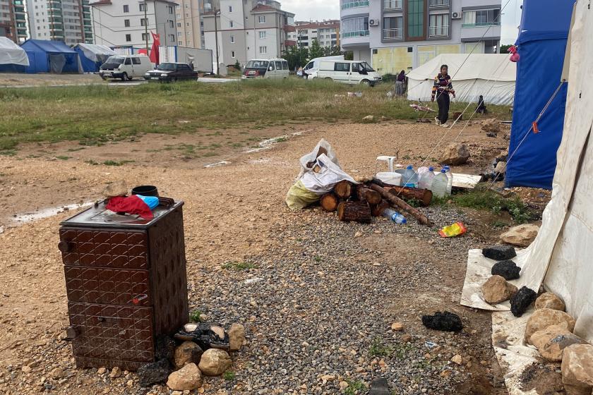 Kalp, tansiyon ve bir çok hastalığı olan Sevim Ökten’i depremden sonra ev sahibi çıkardığı için çadırda kalıyor. Çadırları da defalarca su aldığı için, kalınmayacak hale gelmiş. Ökten, ”Rezillik içerisindeyiz. Ev sahibi evden çıkarıyor, ev de yok. Bu süreçte nasıl ev bulayım ben? Benim tansiyon hastalığım var, ritim bozukluğu var. Ayaklarım şişti burada, çadır bana uygun bir yer değil. Torunlarım perişan oldu. Oğlumun çadırında halılar yüzdü resmen ne yatak kaldı ne bir şey. Mecburen evine gitti ama geri gelecek. Bana bir konteyner vermiyorlar. En azından bir konteyner verseler, içinde otururdum. Sahip çıkmıyorlar bize. Belediye başkanı kimse yardım etmiyor. Ben bu çileyi çektikten sonra devleti ne yapayım, bu canı ne yapayım? Son günlerimi yaşıyorum ama acı ile yaşıyorum. 68 yaşındayım,3 aydır yaşadıklarım 68 yaşıma bedel oldu. 2 torunum diğer çadırda, 2 torunum da bu çadırda rezil oldu. Bize bir konut versinler, başımızı sokalım yeter.”