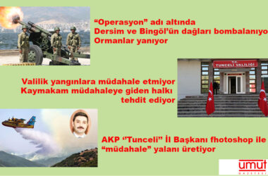 Dersim’de orman yangınlarına müdahale edilmiyor. Askeri operasyonlar gerekçesi ile bombalanan ormanlık ve dağlık alanda çıkan yangınlar sürüyor. Devlet müdahale etmiyor aksine sosyal medyada oluşan tepkilere “yasal işlem başlatılacaktır” ifadeleri ile toplumu sessiz ve seyirci kalması konusunda baskılıyor Dersim Belediye Başkanı Fatih Mehmet Maçoğlu, Dersim’de süren orman yangınına müdahale isteklerinin valilik [Devamını Oku…]