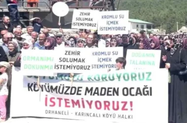 Bursa’nın Orhaneli ilçesi Karıncalı köyünde, içme suyu hattı üzerine kurulan krom madenine karşı köylüler eylem yaptı. Karıncalı Mahallesi muhtarı Mehmet Çakır, “Bu fabrika buraya kurulduğu zaman Karıncalı, Yörükler ve Akçabük mahallelerinin su hayatı bitiyor. Su yoksa hayat yoktur” dedi. Mahalle sakini Emine Bal, “Kimin tapulu evine gidip bir başkası oturabiliyor? [Devamını Oku…]