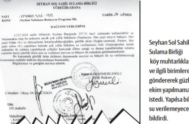 Çukurova’da çiftçilere Seyhan Sol Sahil Sulama Birliği tarafından gönderilen yazıda, suyun bitmek üzere olduğuna dikkat çekilerek, güzlük ekim yapılmaması istendi. Türkiye’nin en verimli tarım arazilerinden Çukurova’da su bitti. Ali Ekber Yıldırım’ın Ekonomim’deki yazısına göre Seyhan Sol Sahil Sulama Birliği köy muhtarlıklarına ve ilgili birimlere yazı göndererek güzlük ekim yapılmamasını istedi, [Devamını Oku…]