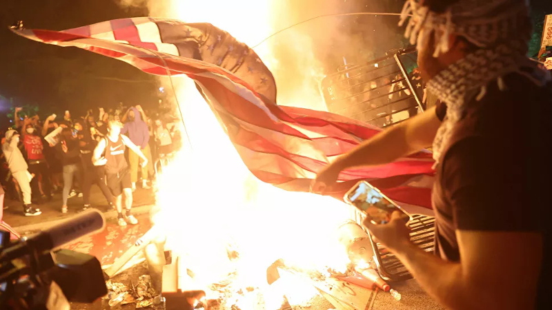 George Floyd’un katledilmesinin ardından ABD’de başlayan eylemler sürüyor. Washington’daki eylemde Beyaz Saray önünde ABD bayrağı yakılırken Washington’da yaşayan gazeteci Rona Doğan da, konuyla ilgili yaptığı paylaşımda “Beyaz Saray karşısında Amerikan Bayrağı yakıldı. Polis etten duvar ördü, Beyaz Saray’a çıkan yollar kapatıldı” ifadelerine yer verdi.
