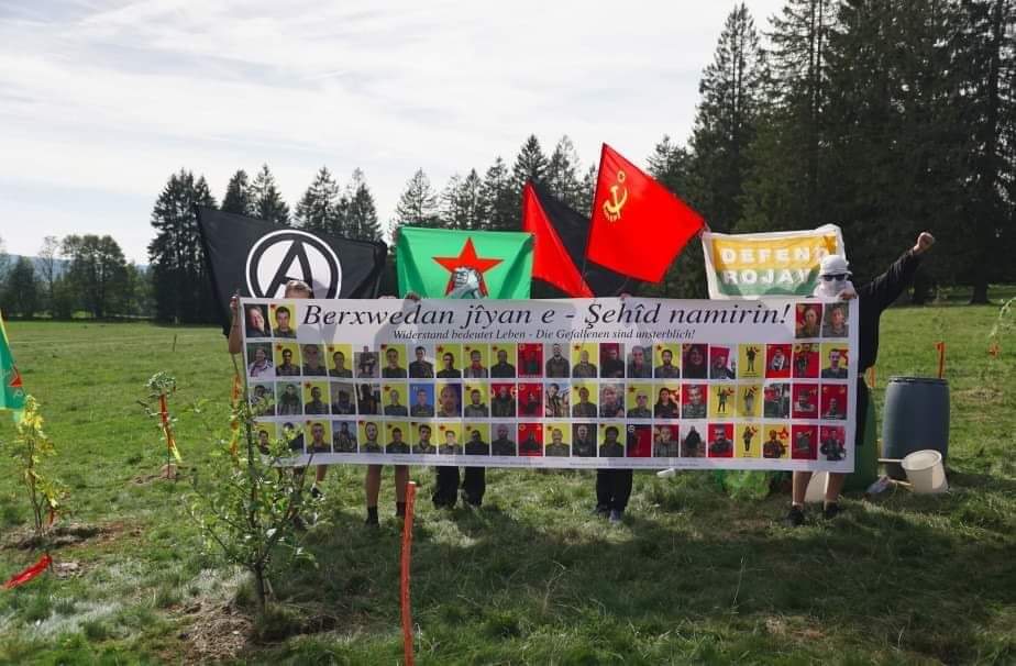 İsviçre’de yaklaşan Kobane direnişinin yıl dönümü için ağaç dikme etkinliği yapıldı. İsviçre’nin Mont Soleil Dağı ,Güneş Dağı olarak bilinen alanda Rojava’da ölümsüzleşen enternasyonal savaşçıların anısına ağaç dikilerek anma yapıldı. Rojava`da ölümsüzleşen enternasyonalist savaşçılar için yapılan eyleme ayrıca enternasyonalistlerin resimlerinin de asılmasıyla küçük bir anıt orman alanı da oluşturulmuş oldu. Etkinliğe [Devamını Oku…]