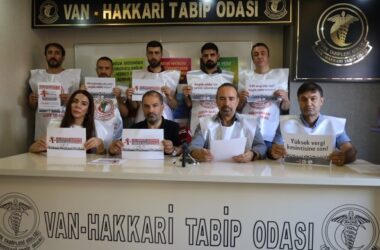 “Vergide adalet” eylemlerini 25’inci haftasında sürdüren sağlık emekçileri, mücadelelerini sonuç alıncaya kadar sürdüreceklerini belirtti. Van-Hakkari Tabip Odası üyeleri, yüksek vergi ve faizlere ilişkin açıklama yaptı. Oda binasında yapılan açıklamada, “Yüksek vergi kesintisine son ver”, “Vergide adalet için alanlardayız” ve “Aile hekimleri çalışanları vergide adalet istiyor” dövizleri açıldı. Açıklamayı yapan Oda [Devamını Oku…]