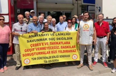 TÖB-SEN Bursa Temsilcisi Serkan Bebek hakkında ÇEDES ve Tarikatlara yönelik yaptığı sendikal faaliyet sonrası soruşturma açıldı. Soruşturma sonucunda Bebek’e kınama cezası verildi ve görev yaptığı okuldan sürgün edildi. Bursa’nın Osmangazi ilçesi Faik Yılmaz İlkokulunda sınıf öğretmeni olarak görev yapan Bebek, yine Osmangazi ilçesinde bulunan Mollafenari Şehit Sinan Yaylı İlkokulu’na sürgün [Devamını Oku…]