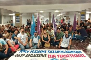 İzmir Büyükşehir Belediyesi’nde çalışan kamu emekçilerinin özgür toplu sözleşme talebiyle yürüttükleri mücadele tüm engellemelere ve baskılara rağmen devam ediyor. Sözleşme taleplerinin yanı sıra dün iş yerleri olan hollere giriş esnasında yaşanan arbedeyi ve Tüm Bel-Sen İzmir 1 No’lu Şube Yöneticisi Salih Deniz Islakoğlu’nun soruşturmaya çağrılmasını protesto eden kamu emekçileri, eylemlerine [Devamını Oku…]